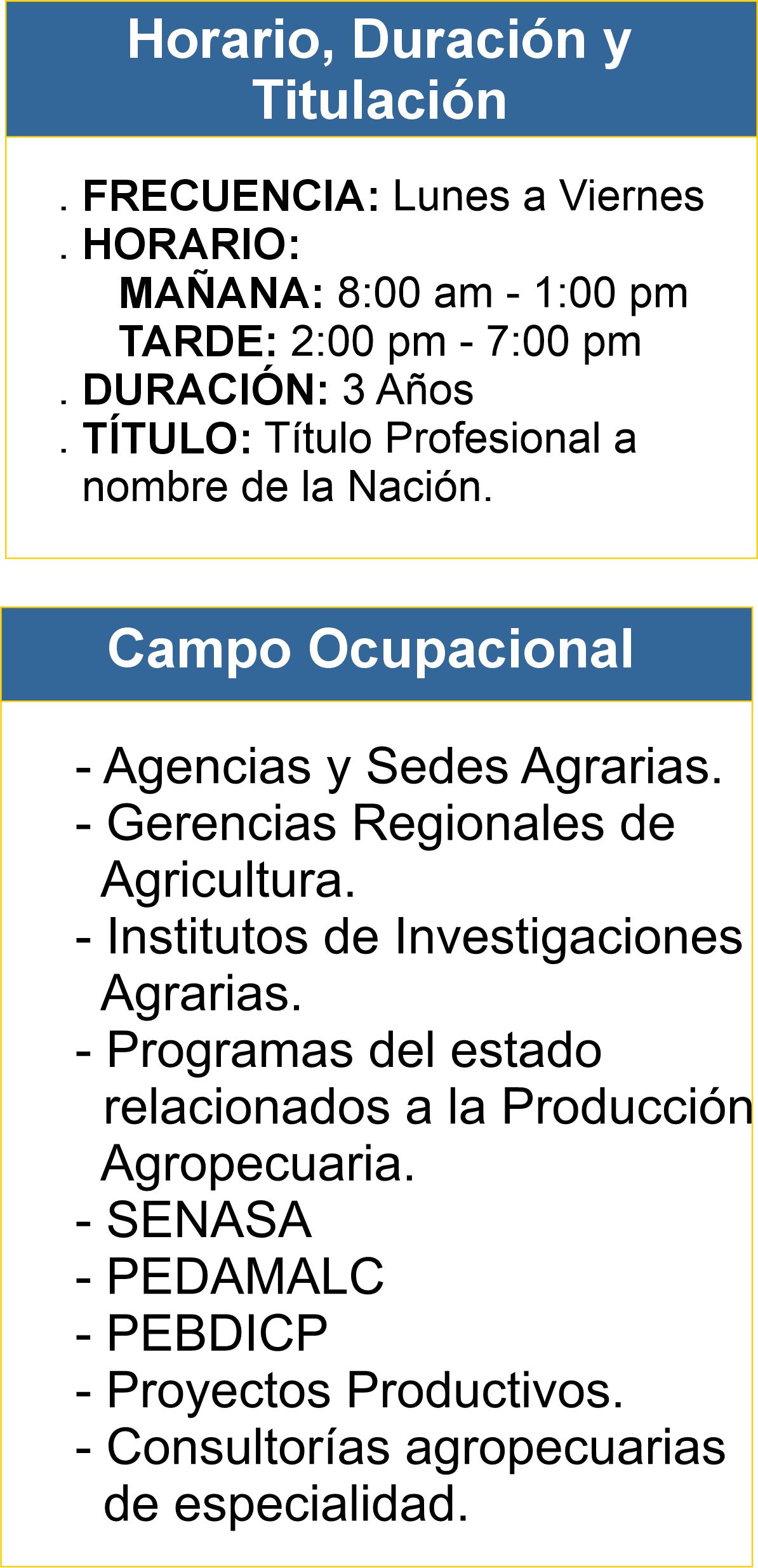 El egresado de producción agropecuaria es un profesional que realiza la instalación y manejo de actividades productivas agrícolas y pecuarias, implementa la infraestructura productiva y el procesamiento primario de productos agrícolas y pecuarios, con una buena gestión administrativa, manejo del almacenamiento y comercialización, aplicando buenas practicas agropecuarias y normas sanitarias vigentes. con un enfoque de interculturalidad y comunicación afectiva y asertiva, usa además el idioma inglés, emplea las herramientas informáticas, trabaja con ética e integridad demostrando su capacidad innovadora y liderar emprendimientos mediante el trabajo en equipo.